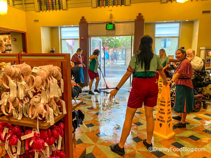 Hollywood Studios also floods when there is a lot of rain at once. In 2022, we even saw stores flooding during a big storm. If you are in an area that is flooding, you’ll want to move. This allows Cast Members to have the room to help clean up the water quickly.