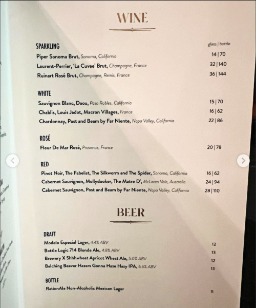 You can get some classic cocktails here such as martinis and an Old Fashioned. Or try one of their custom cocktails like the Bramble, Derby, or Aviation.
