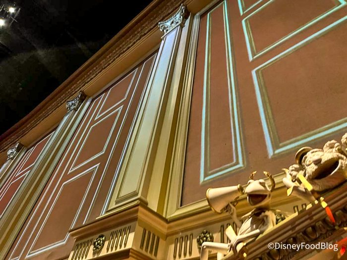 As old as it is, it was probably time for some upgrades and we are convinced that Disney has done just that. There have been some technological advancements made to the projection system inside the Grand Arts Theater! We are now noticing there seems to be projection mapping inside the theater. This means all the projections are fitting the architecture of the building almost seamlessly.