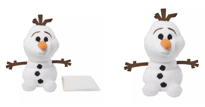 This is Olaf, and he likes warm hugs! This plush has a removable 2.5-pound weight inside, which makes him extra snuggly and comforting.
