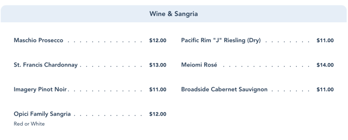 The menu for the lounge can be found on the My Disney Experience app or website, however, your server will most likely offer you a physical menu.