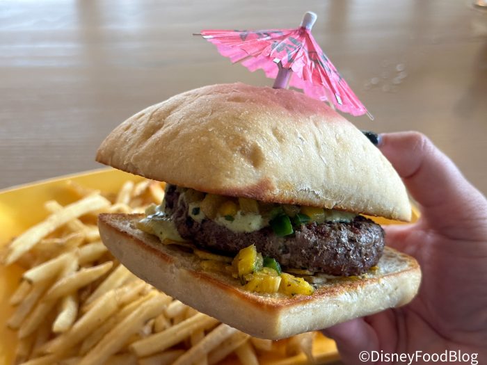 The bread for the bun reminded me of a Sister Schubert’s roll you can get in the grocery store and there are two interesting layers of flavor above and below the meat patty — the bottom is crunchier while the pineapple and jalapeno cream is on the top, and gives more of a juicier but spicy bite that bursts as the pineapple tidbits are popped.