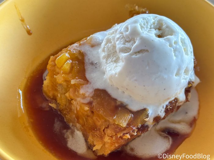 As if I didn’t have enough food already it was time for dessert, so we ordered quite possibly the best dessert in all of Walt Disney World the Pineapple- Coconut Bread Pudding.