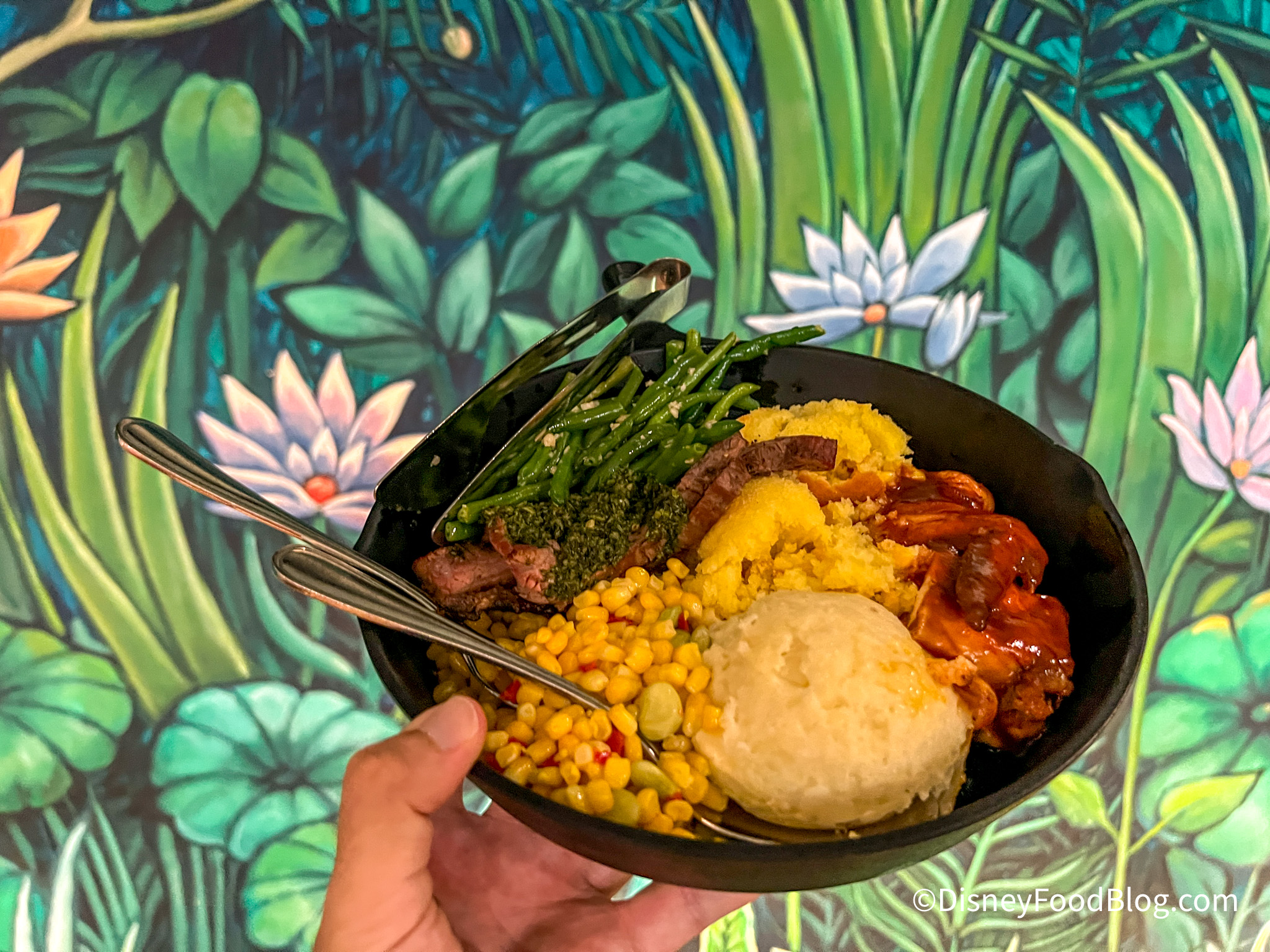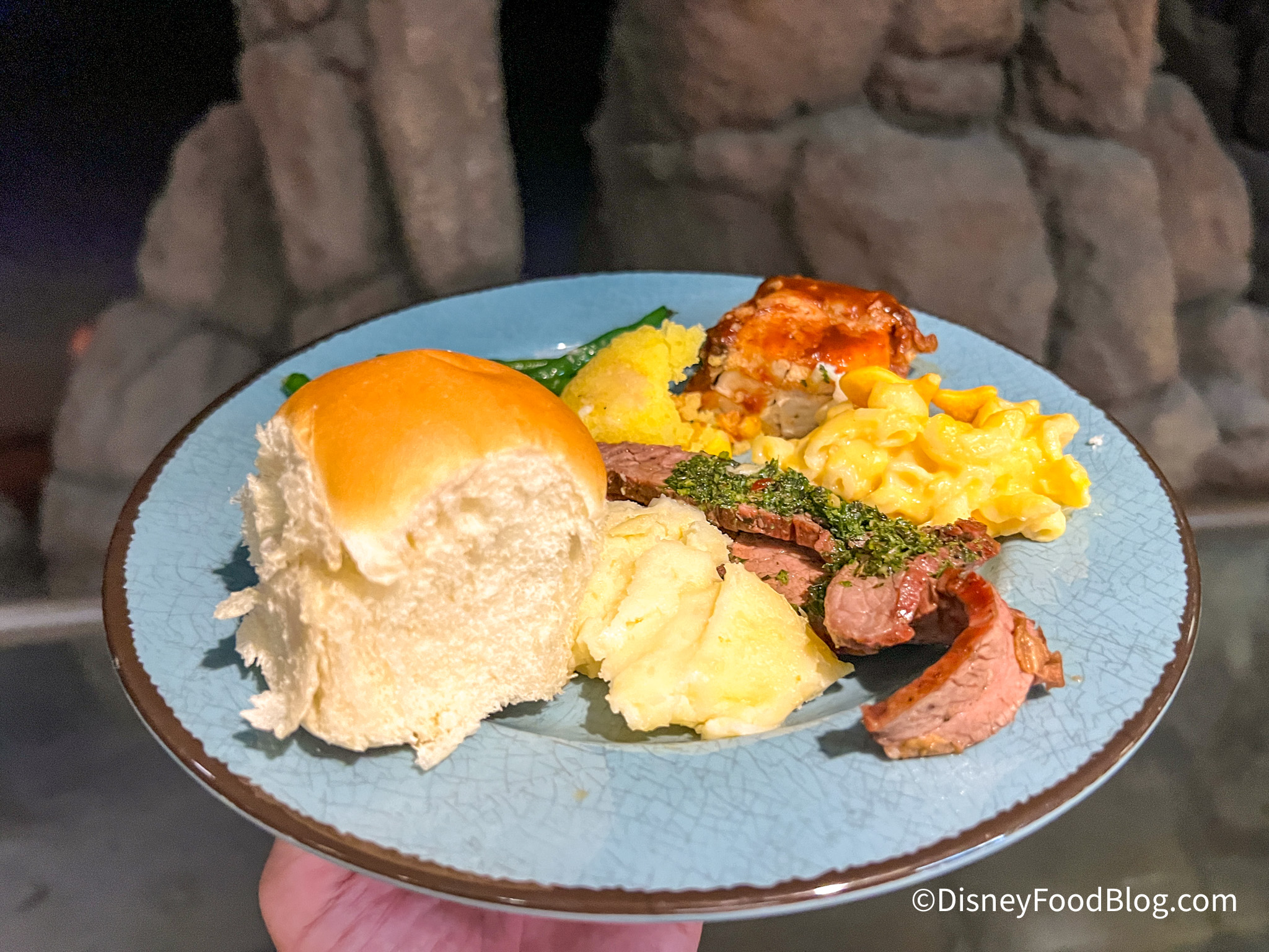This family-style meal is sure to fill you up. If you like garlic and butter, we’re sure you will enjoy this meal. It incorporates many other flavors, but those are the stand-outs for us. You might also enjoy this dining location if you like the Living with the Land ride or character meals. You can get lots of fun interactions here!