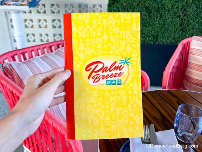 You’ll find a nice breezy outdoor spot to dine when you arrive. Our server told us that Disney chose the name Palm Breeze for the bar because Walt Disney liked to vacation in Palm Springs.