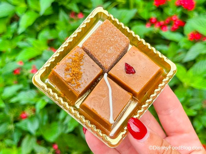 Over at Karamel-Kuche in EPCOT, you can find the Werther’s Original Caramel Holiday Flight for $7.29! The caramel consists of four squares in Cranberry, Eggnog, Gingerbread, and Snickerdoodle! pic.twitter.com/8wznxldcT3