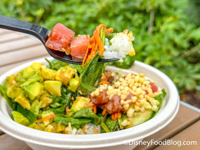 At the base was a good portion of well-cooked rice. Overall, this is not the cheapest lunch you can get in Disney Springs, but it’s a great value. The ingredients were fresh and didn’t weigh me down, yet there was enough to fill me up. I would get this again!