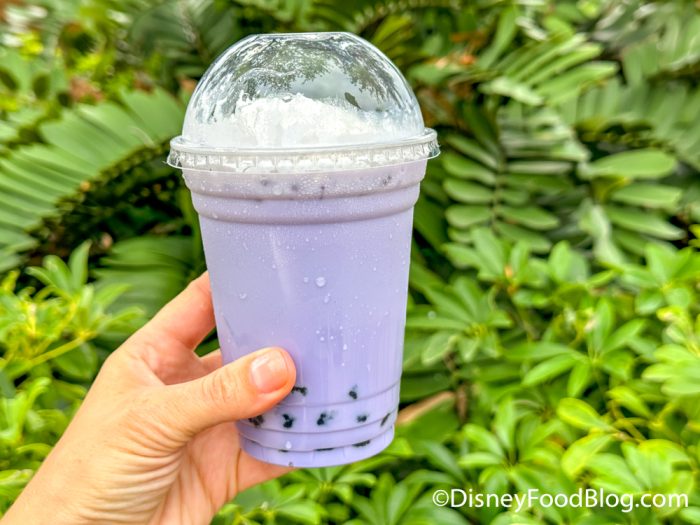 The Taro Milk Boba Tea costs $8 and comes topped with whipped cream. At the risk of sounding crazy — this tastes like the color purple.