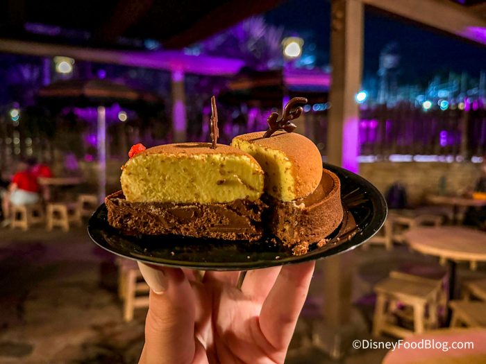 - Chocolate Eggnog Reindeer: Chocolate tart topped with eggnog mousse and chocolate antlers (New) (Available during Mickey’s Very Merry Christmas Party only)