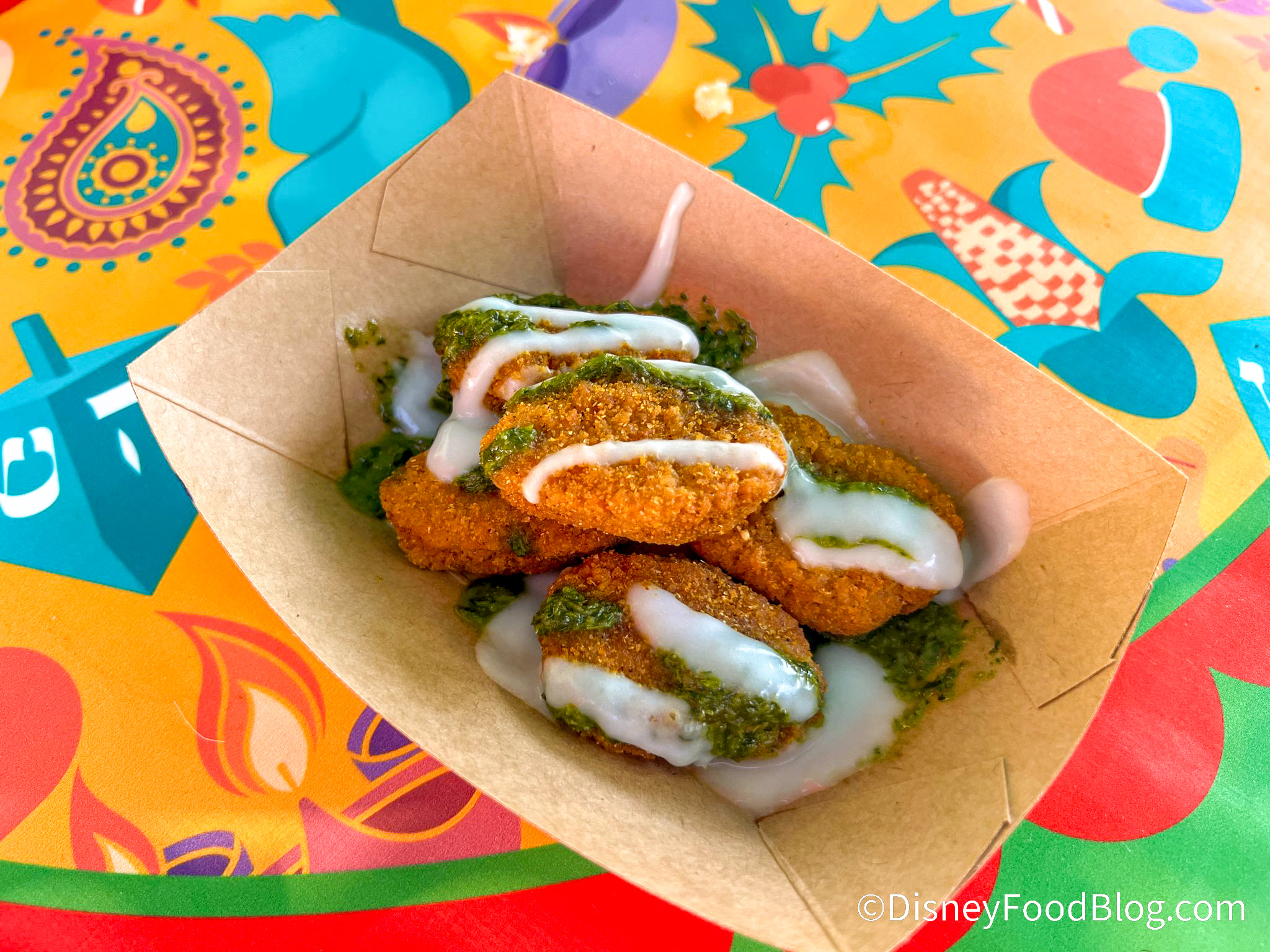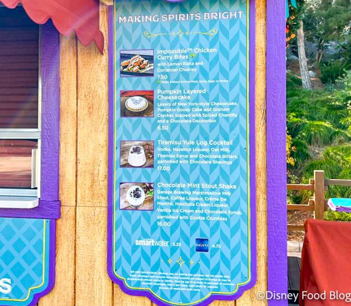 Over at the Making Spirits Bright booth, you’ll find a variety of available items, including some IMPOSSIBLE Chicken Curry Bites, a pumpkin-flavored cheesecake, and a couple of drinks.
