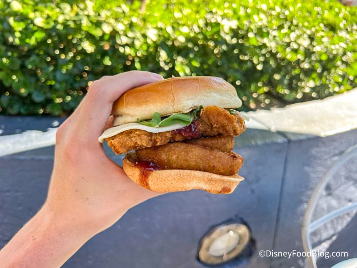 Upon the first bite, we enjoyed the new sandwich. The crispy chicken had a fantastic, audible crunch and a slightly peppery taste. It wasn’t too dry or too juicy, a pretty Goldilocks piece of chicken. We noticed there were hints of the sweet and tangy orange and cranberry flavors but definitely not overpowering. It still had a good BBQ flavor. Our least favorite part of the sandwich was the onion rings. They seemed to be really hard and didn’t add much flavor. Other than the rings, we really enjoyed it!