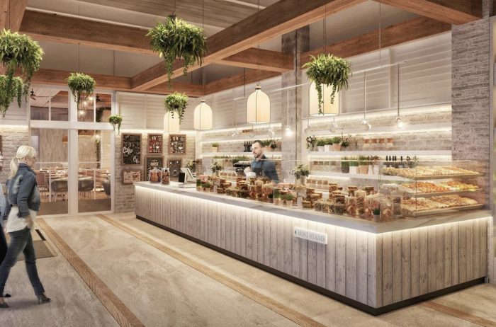 The design of the restaurant is meant to evoke the cool breeze of a summer day indoors, welcoming its diners to enjoy “sweeping views and a relaxing lakeside breeze.” The restaurant will host three bars, a dining room with a light, airy feel centered around a robust tree reaching upward toward the skylight, and the greenery spread throughout the restaurant was designed in collaboration with the Rockwell Group.