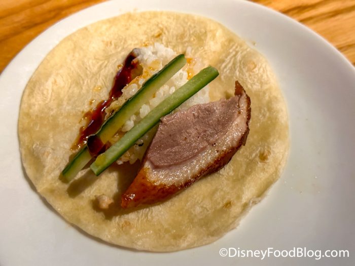 We chose the flour tortillas to be our base. The duck was tender and we enjoyed assembling these ourselves. While we enjoyed this dish, we aren’t sure it’s for everyone. It comes with a heavy price tag of $79 and if you aren’t a huge fan of duck, this might be a skip for you.