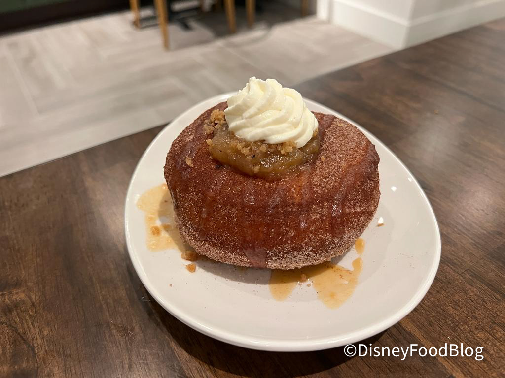 Next, we tried the Seasonal Doughnuts, which are apple-filled. We LOVED these and preferred them to the others. They’re hefty, and also dense and cakey like the others. They’re heavenly if you love that typical fall, cinnamon apple flavor.
