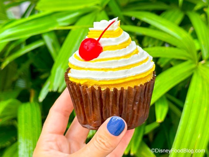 If you’ve got a group who loves Dole Whip or doesn’t really want to ever let go of spring and summer, the Dole Whip Cupcake is a great choice.