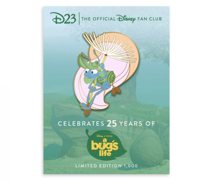 Another Disney film is celebrating its anniversary: Disney x Pixar’s A Bug’s Life! This pin is a limited edition of 1,000 and features Flick soaring into action on a dandelion.