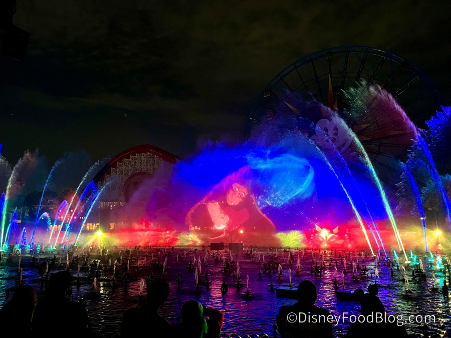 Now, Disney has added a short NEW water show that plays before World of Color! This pre-show is only sticking around for a limited time. The added show is based on Disney’s Wish movie.