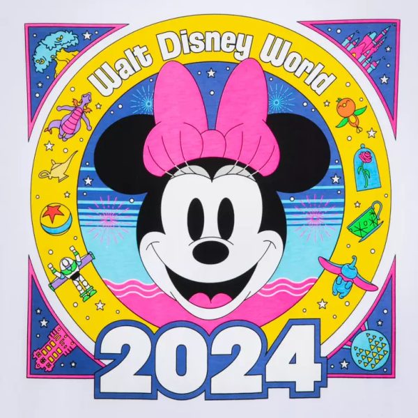 2024’s merch collection has amazing vibes and a very bright color scheme — so we promise that you won’t be able to miss it if you’re shopping for it at Disney World. Not headed to Disney World yet? Not to worry– they finally released the merch ONLINE! Yep — you can buy it TODAY!