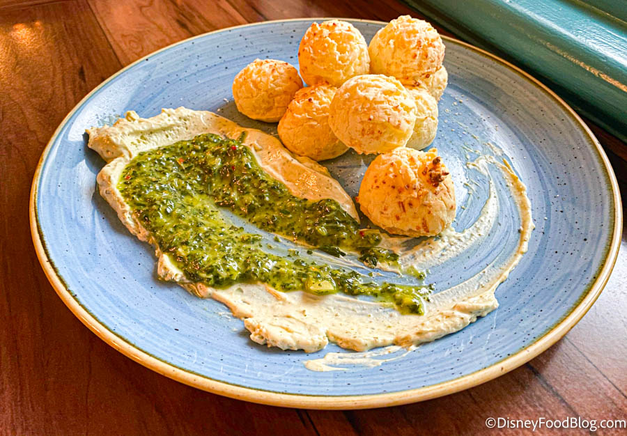 The bread is simple — just little balls of bread, stuffed with soft cheese on the inside. It’s also served with chimichurri cream cheese. To order this one, you have to ask your server what’s on the “secret menu” on the day of your visit, and HOPE AND PRAY that this is one of the options. You can also find it at the Brazil booth during EPCOT’s Food and Wine Festival!