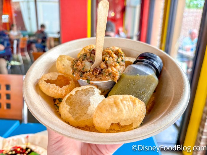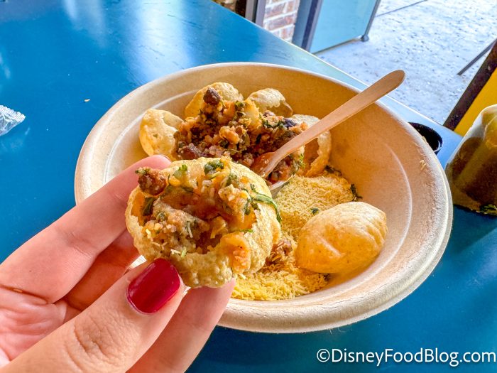 You assemble these yourself by stuffing the chutney inside the puffs and then pouring a few drops of the water on top. It was fairly spicy, but there’s a really great mix of textures here with crunchy, soft, and chewy. It’s very bright.