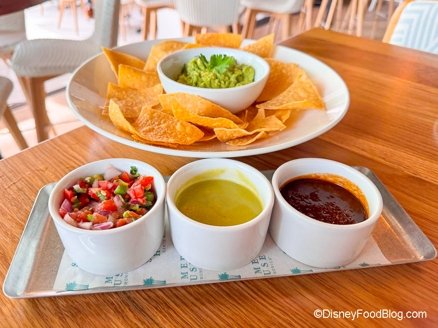 Of course, we had to order some appetizers. We got the signature guacamole, which also comes with house-made tortilla chips, cilantro, pico de gallo, charred-tomato salsa, and habanero verde.