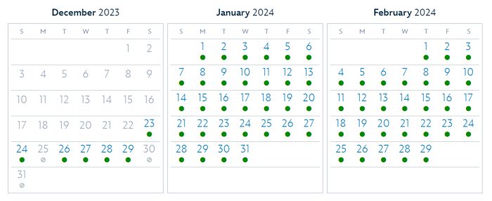 We are visiting Jan 1 2024. Group of three adults and one 4 year old