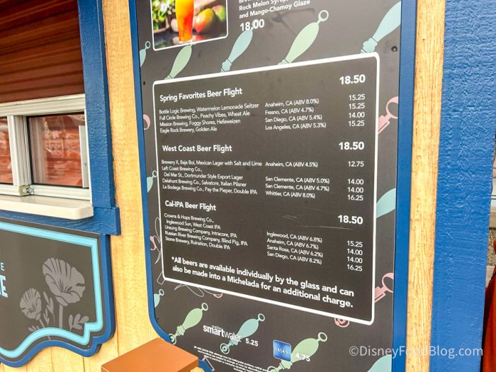 - Frozen Mangonada Beer Slush: Brewery X Baja Boi, mango purée, rock melon syrup, grapefruit juice, and mango-chamoy glaze (New) – $18.00