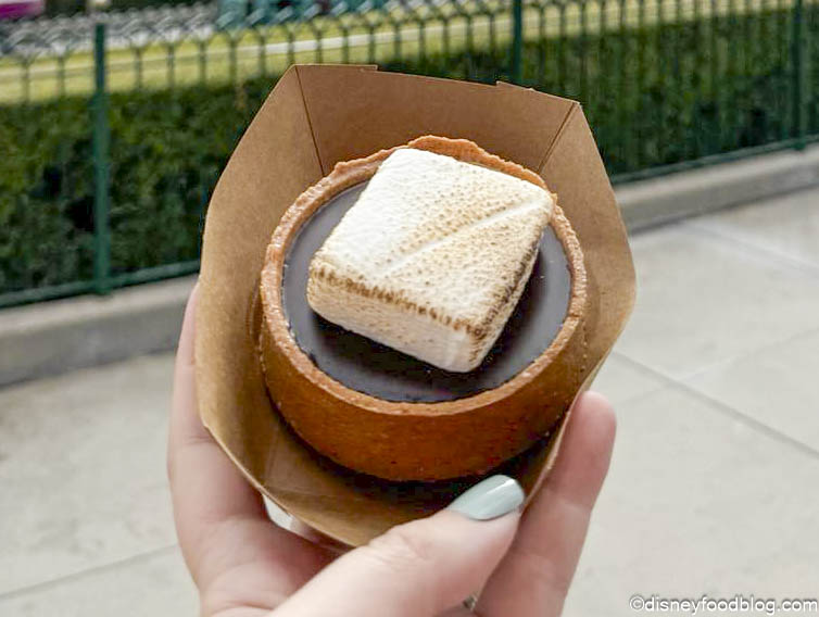 - S’mores Caramel Tart: Graham cracker tart shell filled with caramel and chocolate ganache topped with a toasted marshmallow (New) – $7.00