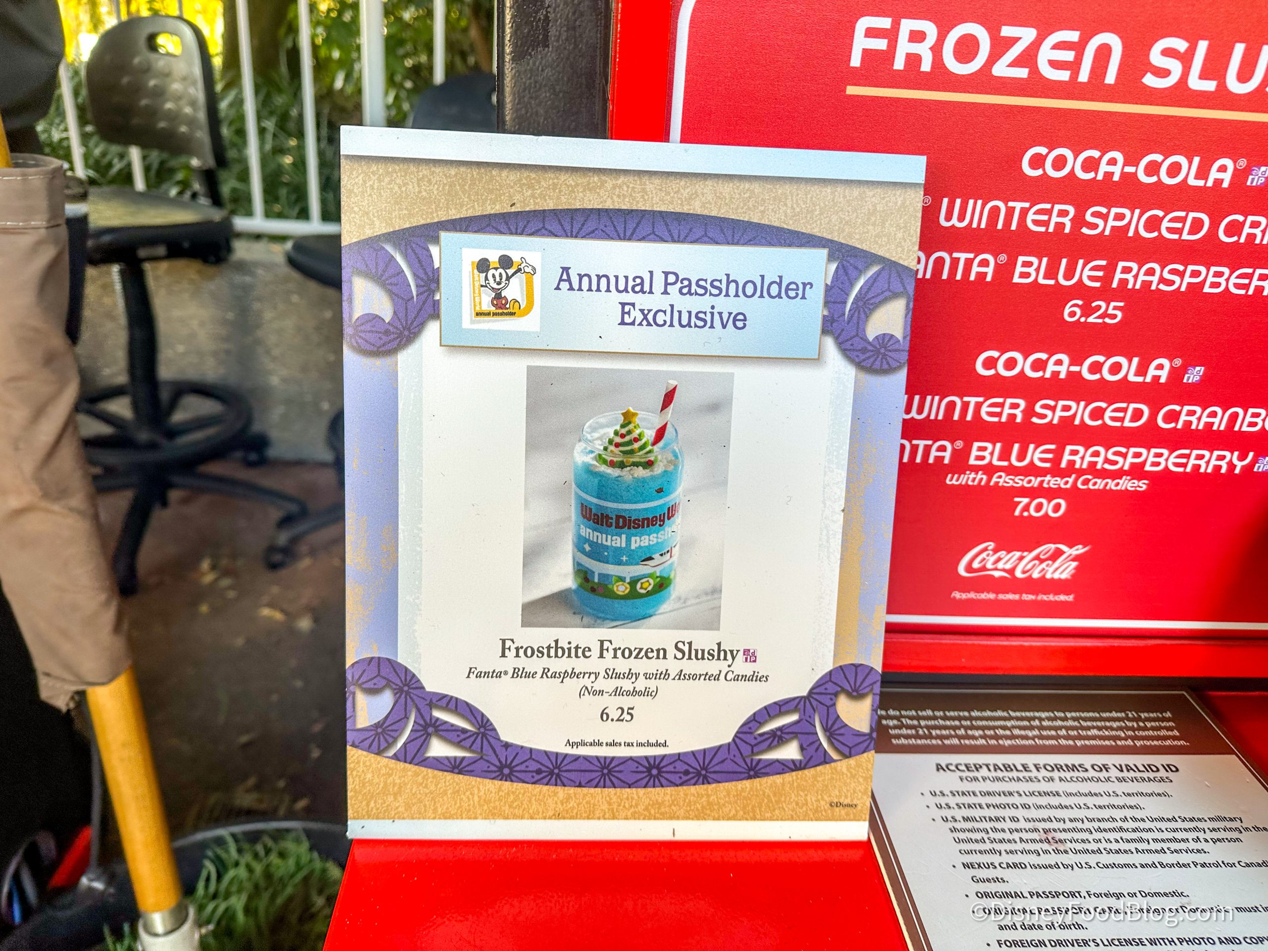 - Frostbite Frozen Slushy – Annual passholder exclusive – $6.25, DDP Snack Eligible