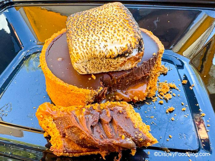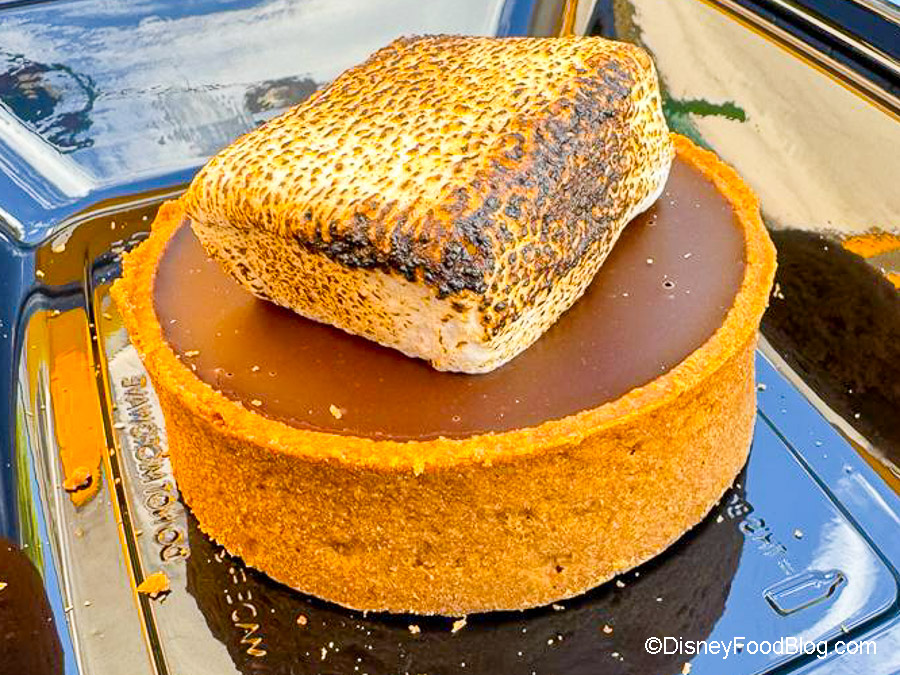 Now, on to the new treats. If you love S’mores, we’ve got the treat for you. The S’mores Tart for $6.49 is made with Graham Cracker Shell filled with Dulce de Leche, Chocolate Sponge, and Chocolate Ganache, topped with a Toasted Marshmallow. We don’t know how Disney does it, but this little tart has a TON of rich flavor.
