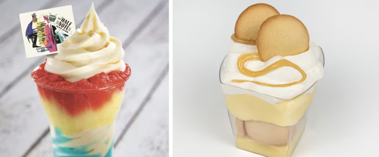 - Celebrate Soulfully Cupcake: Vanilla cake with bananas foster jam filling, vanilla buttercream, Joe Gardner half note white chocolate décor, and multicolored crispy pearls