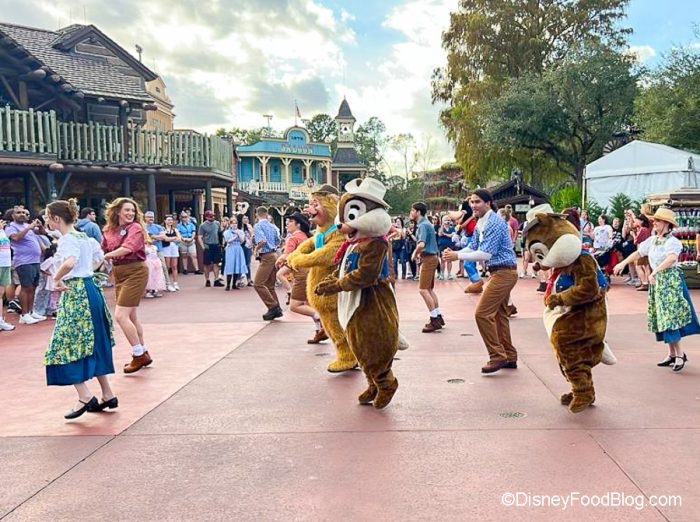 We did happen upon the Frontierland Hoedown that happens a few times a day with the characters, including the Country Bears, who are SUPPOSED to be rehearsing for a new act, but we guess they have to let off steam sometimes. Chip and Dale were also around to get in on the Hoedown fun. We wonder if we might see more of these each day now that the Jamboree is temporarily closed.