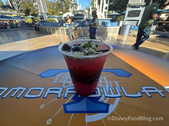 So who will like this Blackberry Sky Splash? People who like fruity drinks, cucumber, blackberry, different flavors of limeade, and a drink that resembles a cocktail without alcohol. We also think it could work as an introduction to cucumber in drinks for the kiddos if that’s something they’re averse to. People who are opposed to tart limeades or cucumber should probably avoid it. Overall, we can safely say this is a drink we will get again and we recommend trying it the next time you find yourself in Tomorrowland!