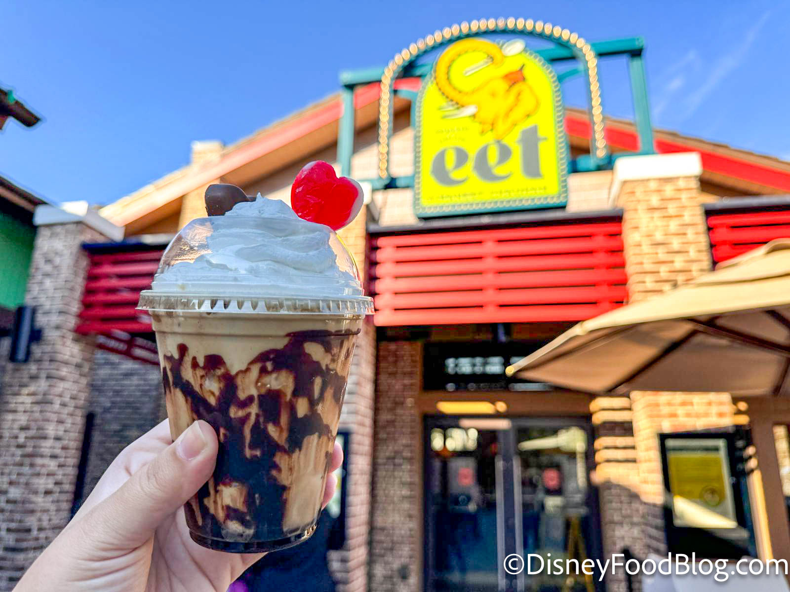 But before we get into the review, there’s something you should know about EET — it’s like, WAY in the back of Disney Springs. If you’re parking at the Orange Garage like I was, it’s about a half-mile walk to get to this restaurant. So let’s see if the new treat is worth the 1080 steps I had to walk to get there!
