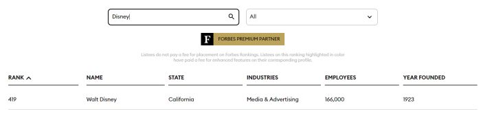 So, how did Disney rank? Well, Disney came in at #419 overall.