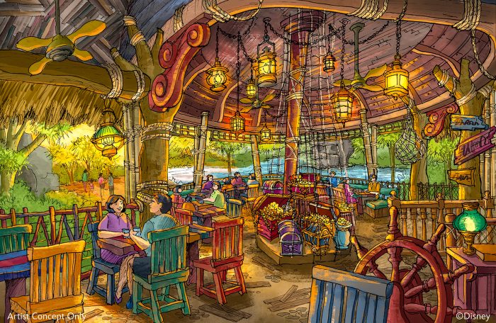 And there will be a Peter Pan-themed restaurant! Lookout Cookout is a hideout built by the Lost Kids, and you can join them there for a meal! The restaurant is built with parts of a shipwreck that had washed ashore at Never Land. You’ll see where the Lost Kids live, and even spot the pajamas and hammocks they slept in last night!