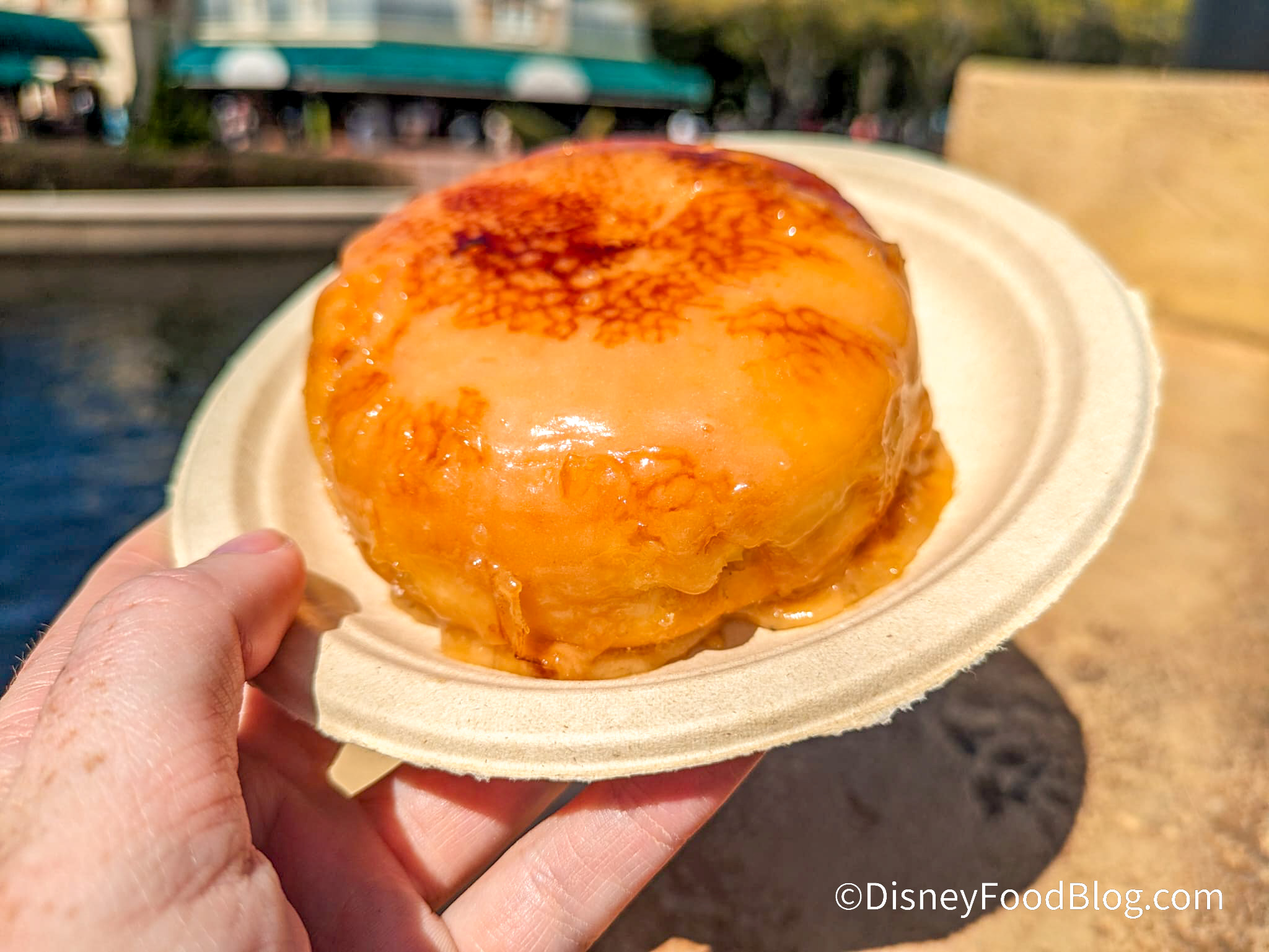 This beignet is more like School Bread at Kringla Bakeri Og Kafe in the Norway Pavilion than a classic Mickey Beignet, as it is very bready with a regular diner roll texture but sweet. Inside, you’ll taste the perfect amount of vanilla cream while the outside features a phenomenal cracked sugar caramelized topping to really complete that amazing crème brûlée texture and flavor.