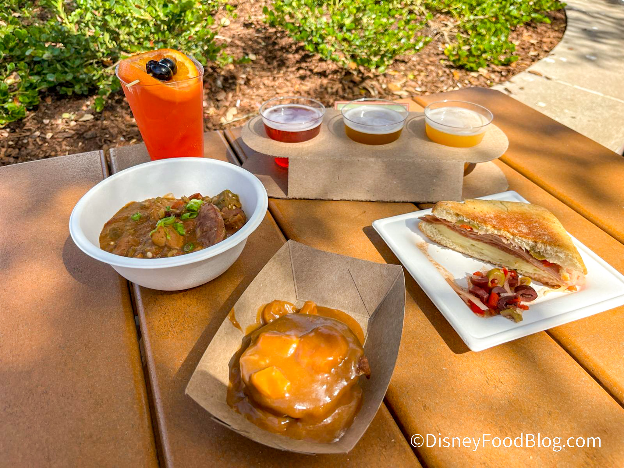 At Magnolia Terrace, many items are returning, but this year also brings us 2 new beers. The menu here is inspired by food from the Gulf region. Three of the four food items here are new and we can’t wait to dig into the Muffuletta Panini, Crawfish Pie, and Bananas Foster Bread Pudding (yes, we’re wiping some drool off as we write this). There’s also a good selection of beers here, including a Beer Flight.