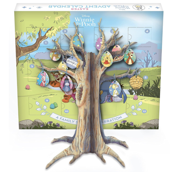 This adorable calendar is filled with Winnie the Pooh-themed treasures that can help you count down the days to Easter. Each of the twelve windows holds an Easter ornament, which you can use to decorate the 3D pop-up spring tree!