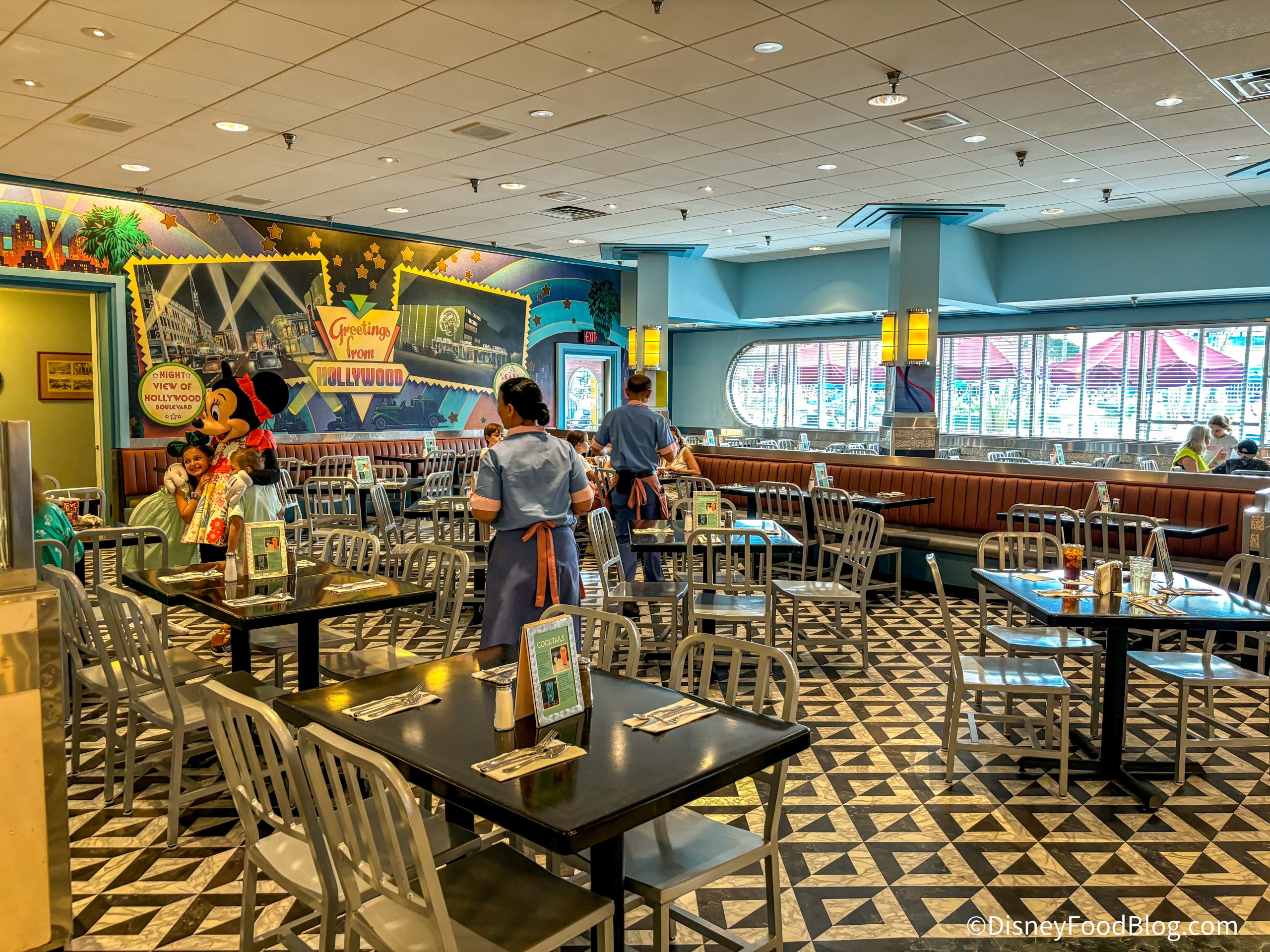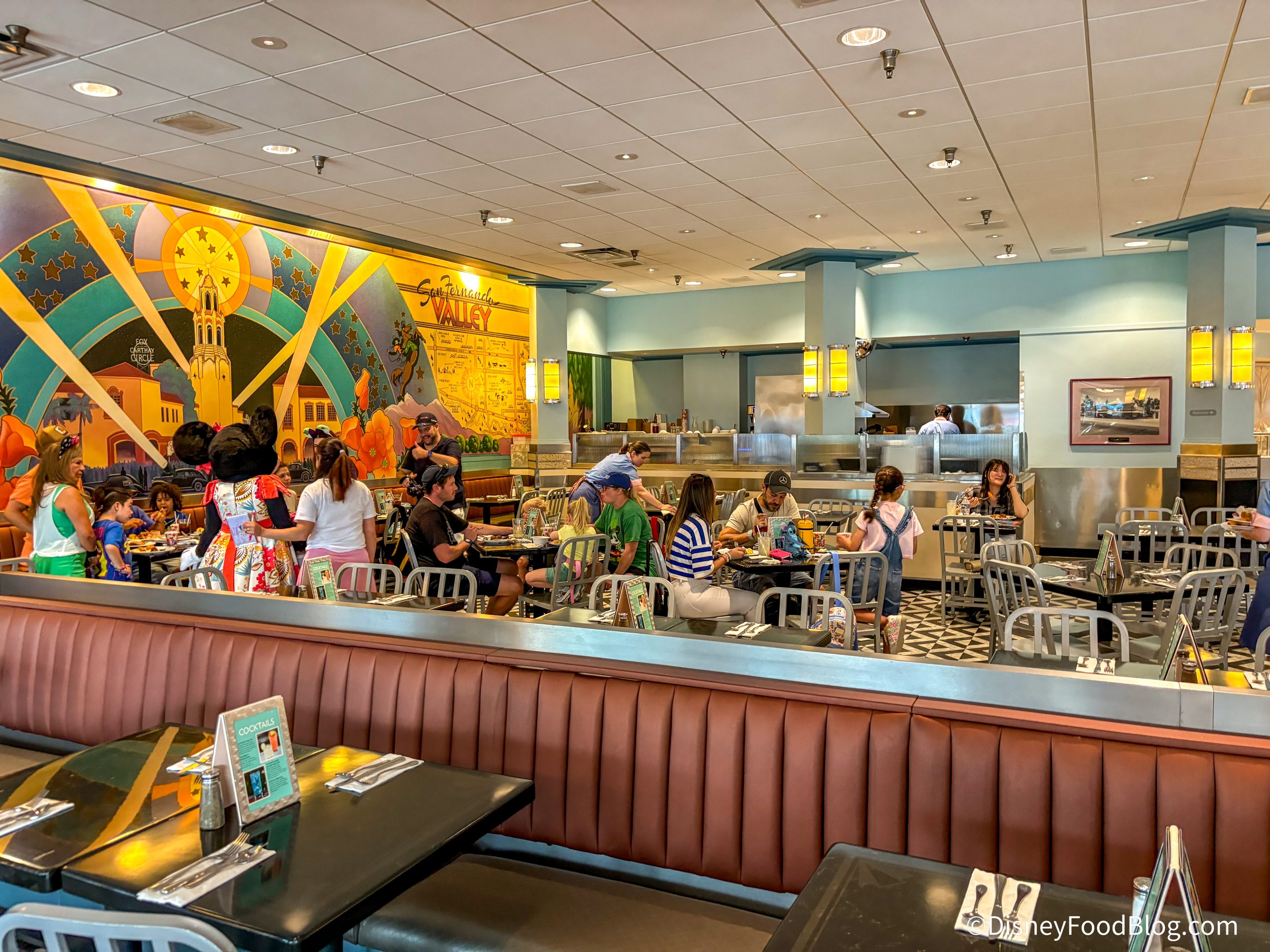 We loved checking out the murals in the restaurant! They add a nice touch to the vibe and a bit of a themed element. Overall, we did not see a lot of theming in the restaurant, but we did get a retro Hollywood vibe. It felt a bit like a cafeteria, but we loved how relaxed and casual the environment was.