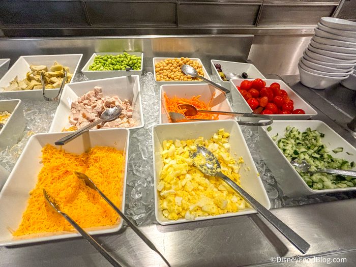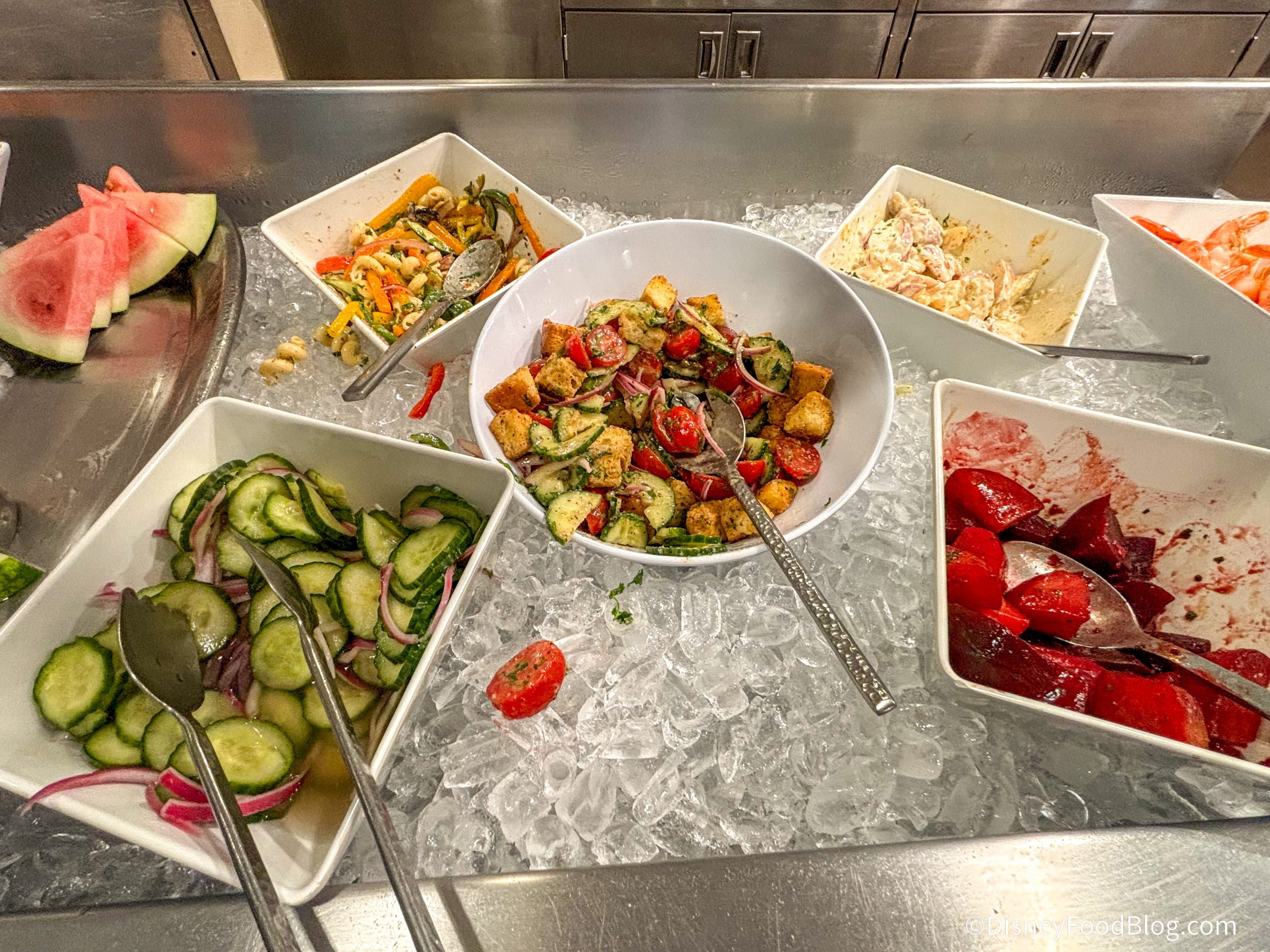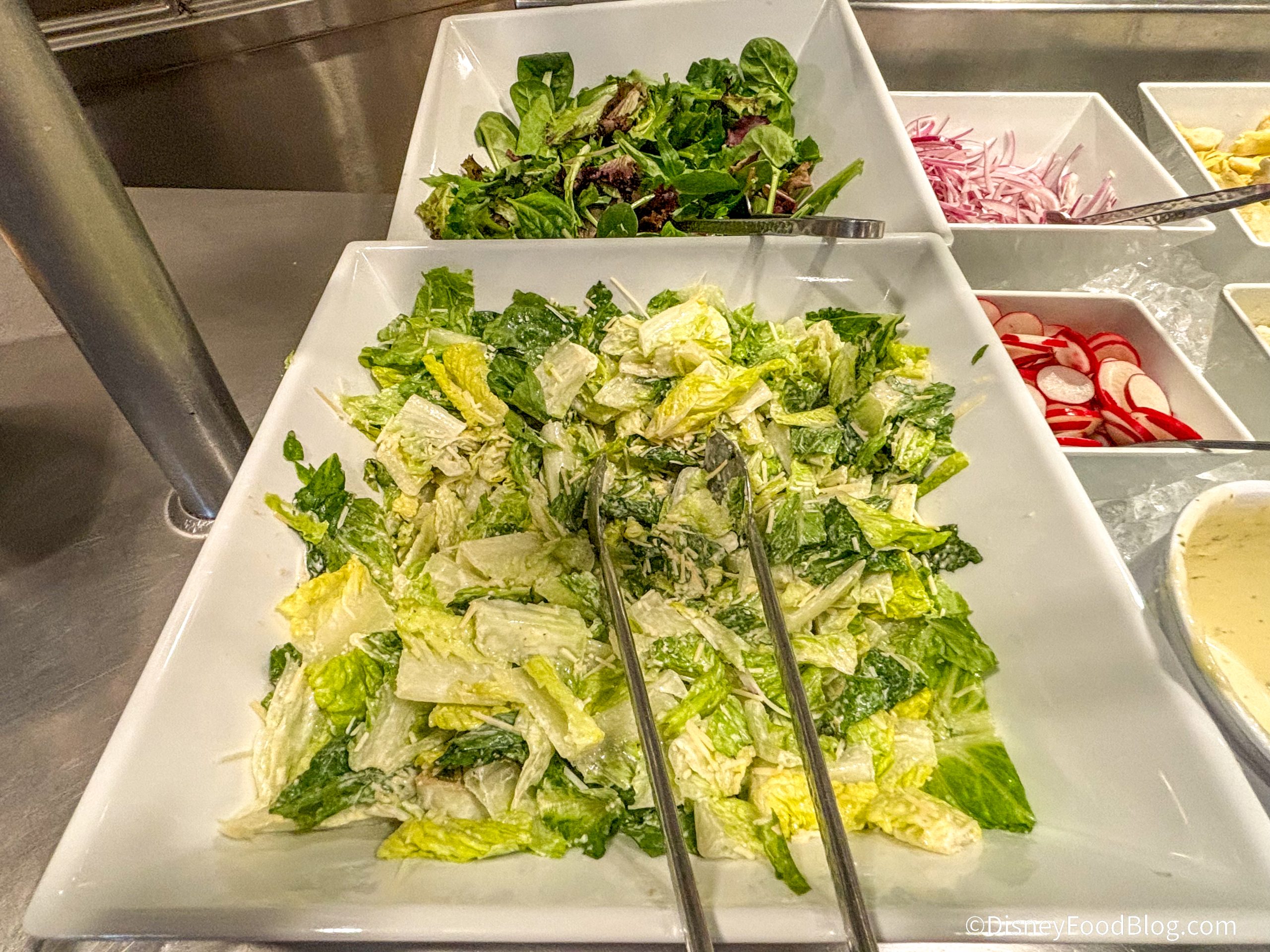 Next up, is the salad area of the buffet. Here you can make your own salad with mixed greens or grab some pre-made Caesar salad.