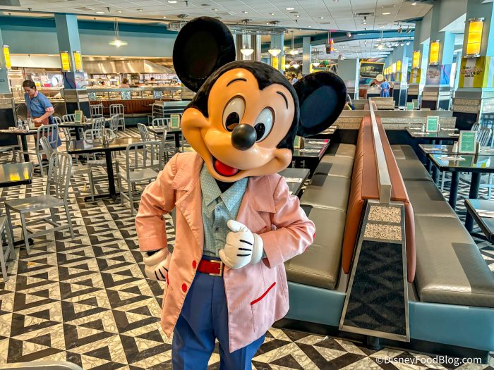 - You love a really themed dining experience. The restaurant has a fun vibe, but there is not much theming. It has a cafeteria feel, and beyond the photo opportunity, Springtime Dine sign on the post, and the characters wearing spring outfits, you wouldn’t know you were celebrating spring. There are a couple of murals, but overall, this won’t be the best theming you can find at a restaurant. If you are wanting to stay in Hollywood Studios, we would recommend checking out the food options in Star Wars: Galaxy’s Edge for some great, themed experiences.