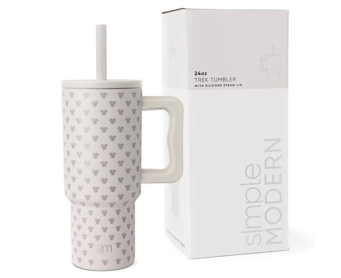If you’re looking for a Disney-themed bottle for your upcoming trip, check out this Simply Modern Mickey bottle! It has a tapered shape (so it’ll fit in cupholders) and a handle that makes it easy to carry around.