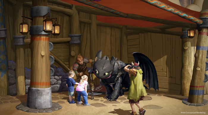 - Dragon Racer’s Rally – Berk’s new Vikings racers can practice aerobatic maneuvers and high-speed barrel rolls on two Viking-made dragon-riding trainers that reach heights of up to 67 feet in the air. Guests can control how “wild” or “mild” their experience will be as they perform high-flying, gravity-defying, swooping and soaring skills that are necessary to earn the accolades worthy of a true champion dragon racer.