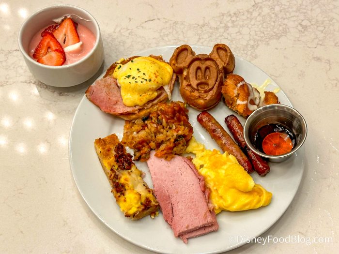 We tried the Mickey Waffles, which were pretty standard ā albeit a bit on the soggy side, which tends to be par for the course at buffets. The scrambled eggs with cheeseĀ were a step up from regular scrambled eggs and we enjoyed them ā not too overdone or dry. Note that there are omelets available here but you need to order those through your server. TheĀ chicken breakfast sausageĀ was smoky and had a great snap just like you want it to. The bacon was on the crunchy side when we had it, but your mileage may vary there.