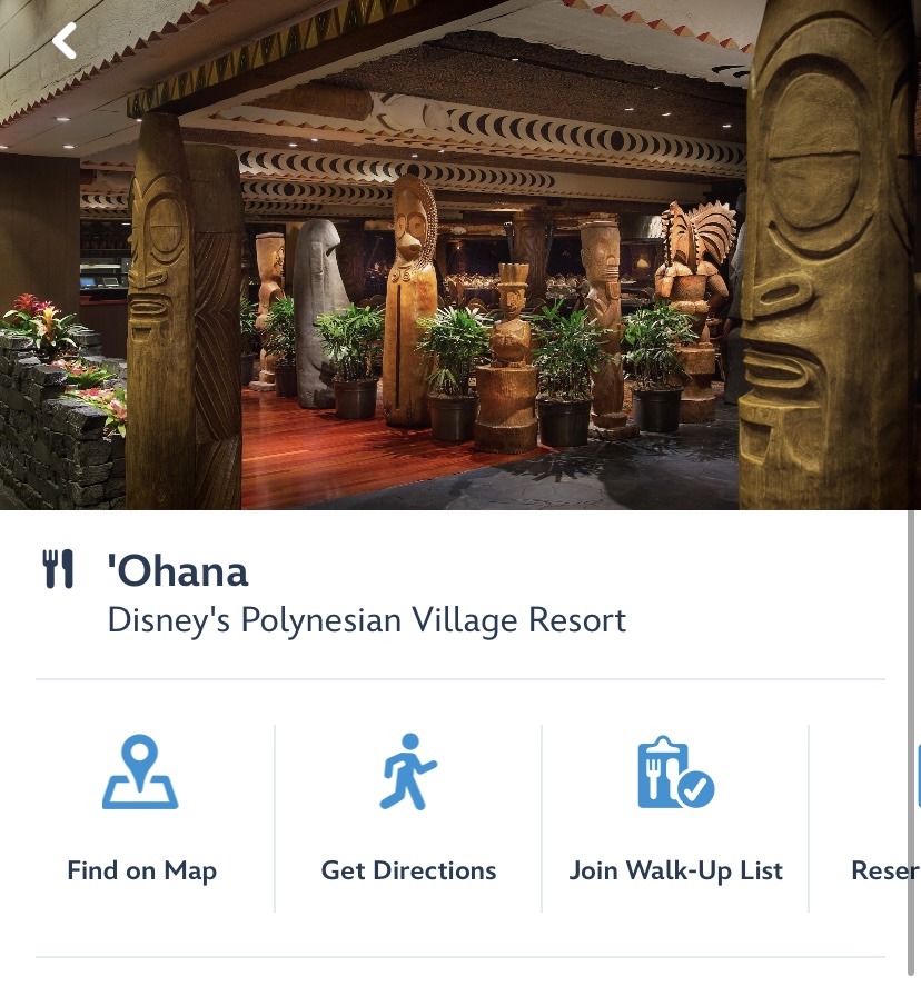 You can also try to join the Mobile Dine Walk-Up List by using the My Disney Experience App. If you have a bigger party, you are more likely going to be able to join the Mobile Dine Walk-Up List, at least this is the case at ‘Ohana because of the table configurations. This is not always guaranteed. Make sure to put your correct party size. For example, if you are a party of three, but on the app say you are a party of eight, you will be turned away.