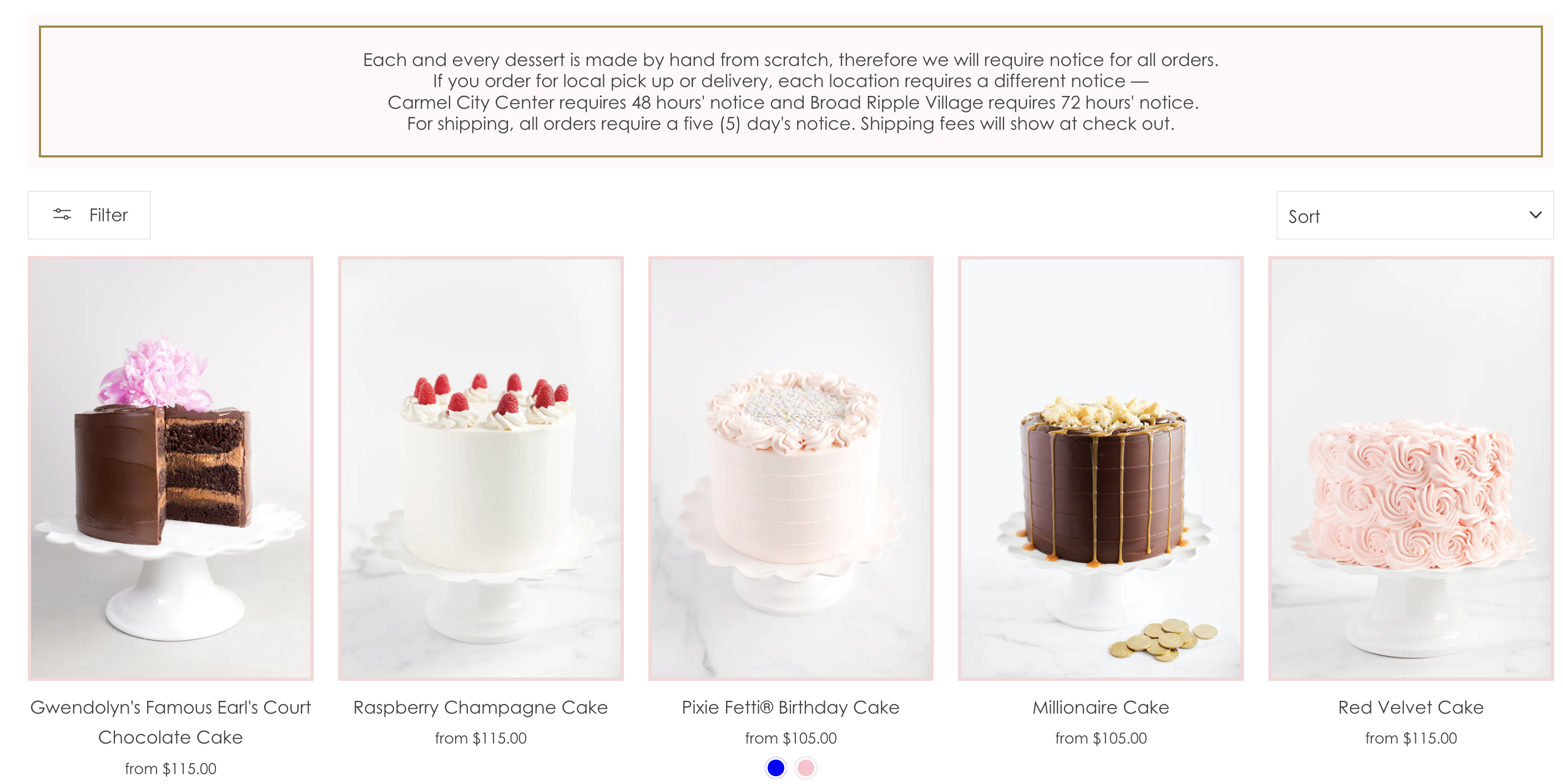 Naturally, we BOLTED over to their website, and sure enough, most of their cakes, pies, and treats are available to be shipped (those that don’t say “pick-up only” next to the listing)!