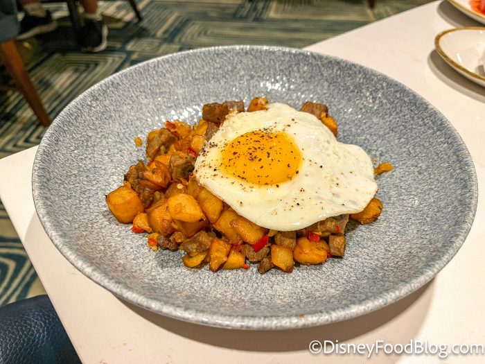 For our entrees, we tried two of the classics. First up was Walt’s Prime Rib Hash, which is seared prime rib, fried potatoes, carmelized onions and peppers, and topped with a fried egg. You can order this entree for $18.