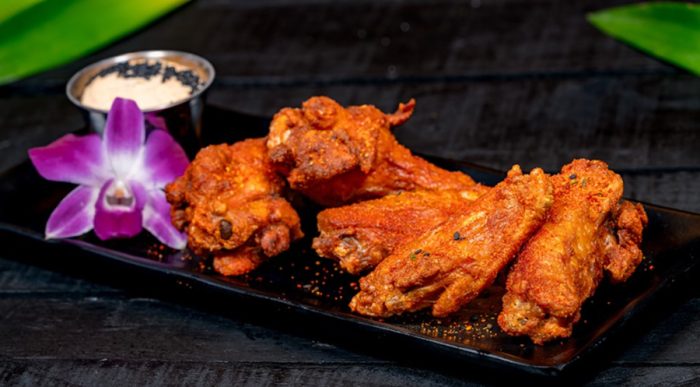 - Bangkok Chicken Wings: Crispy chicken wings, fish sauce caramel, peanuts, and cilantro