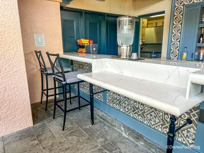 Mardi Grogs is a pool bar at Disney’s Port Orleans Resort – French Quarter. It is located near Doubloon Lagoon, the main pool at the resort. You can stop by for a quick drink or grab a table and stay for a bit.